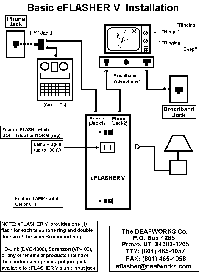 eFLASHER V unit is ideal for every deaf users who rely on videophone devices such as D-Link's DVC-1000 or Sorenson's VP-100 for high-speed video connection for sharper pictures!